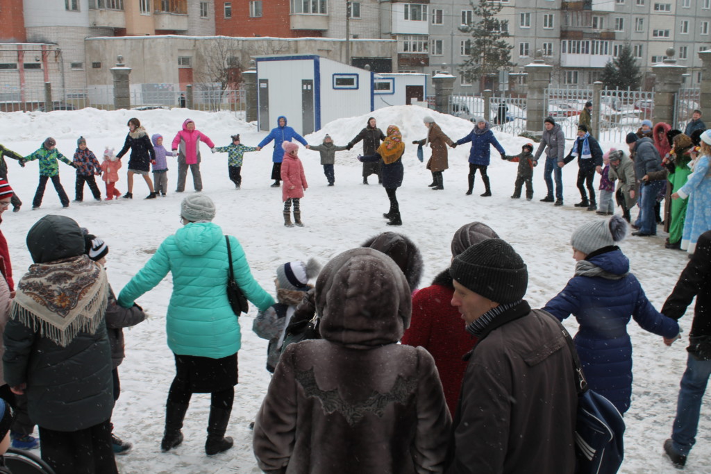 Затем воспитанники Воскресной школы при приходе церкви в честь иконы Божией Матери «Скоропослушница» показали концертную программу, в которую вошли песни, танцы и кукольный спектакль. После этого гуляние продолжилось на улице, где зрителей ждали народные игры и забавы (хоровод, перетягивание каната), беспроигрышная лотерея и угощение блинами, кашей и горячим чаем.