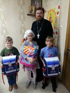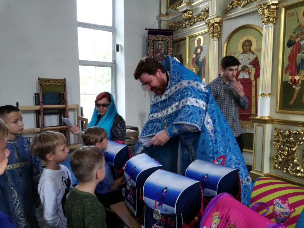 В августе в Московском благочинии прошла благотворительная акция «Соберем детей в школу». Она нашла живой отклик у прихожан. Весь месяц в храмах собирали канцтовары, ранцы и другие нужные школьникам вещи. А 1 сентября благочинный Московского округа протоиерей Михаил Минюхин вместе с директором Воскресной школы при храме в честь иконы Божией Матери «Скоропослушница» Мариной Ерашовой вручили наборы из школьных принадлежностей детям из малоимущих и многодетных семей.