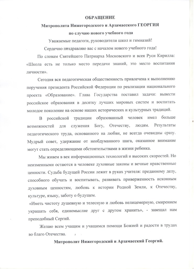 29 августа в школе №118 Московского района прошла районная педагогическая конференция, посвященная началу учебного года. В конференции приняли участие глава Администрации Московского района Владимир Кропотин, начальник Управления образования Московского района Ольга Лебедева, благочинный Московского района Михаил Минюхин. Они отметили важность труда педагога в деле становления человека, как личности, всестороннего его развития. На конференции были намечены планы на предстоящий учебный год. Также на конференции было зачитано обращение с поздравлением митрополита Нижегородского и Арзамасского ГЕОРГИЯ.