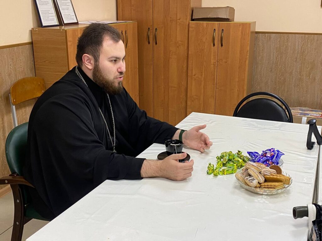 За чаем прошла беседа пенсионеров со священником. Отец Александр познакомился с активистами ТОС, наладил живой активный диалог. Первый разговор был посвящен разнице в понимании судьбы и промысла Божьего. «Судьба — обезличенное понятие: что бы ни произошло с человеком — все судьба. Но в этой картине мира получается, что никто не стоит за происходящим в жизни человека. Другое дело — промысел Божий: человеку радости и горести даются свыше для спасения души, для того, чтобы человек менялся к лучшему», — сказал священник. Слушатели делились с батюшкой своими мыслями по этому вопросу.